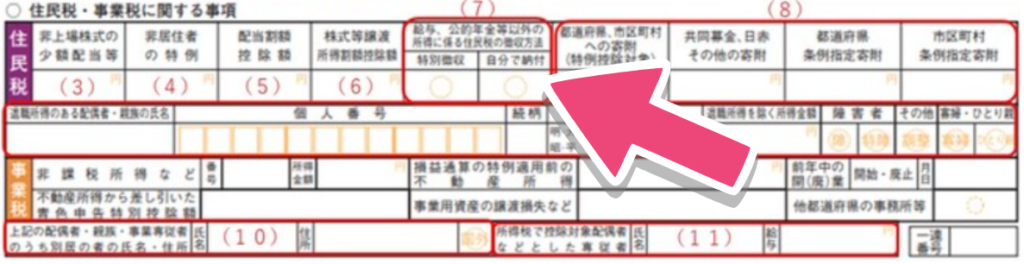 住民税を「自分で納付(普通徴収)」にチェック。