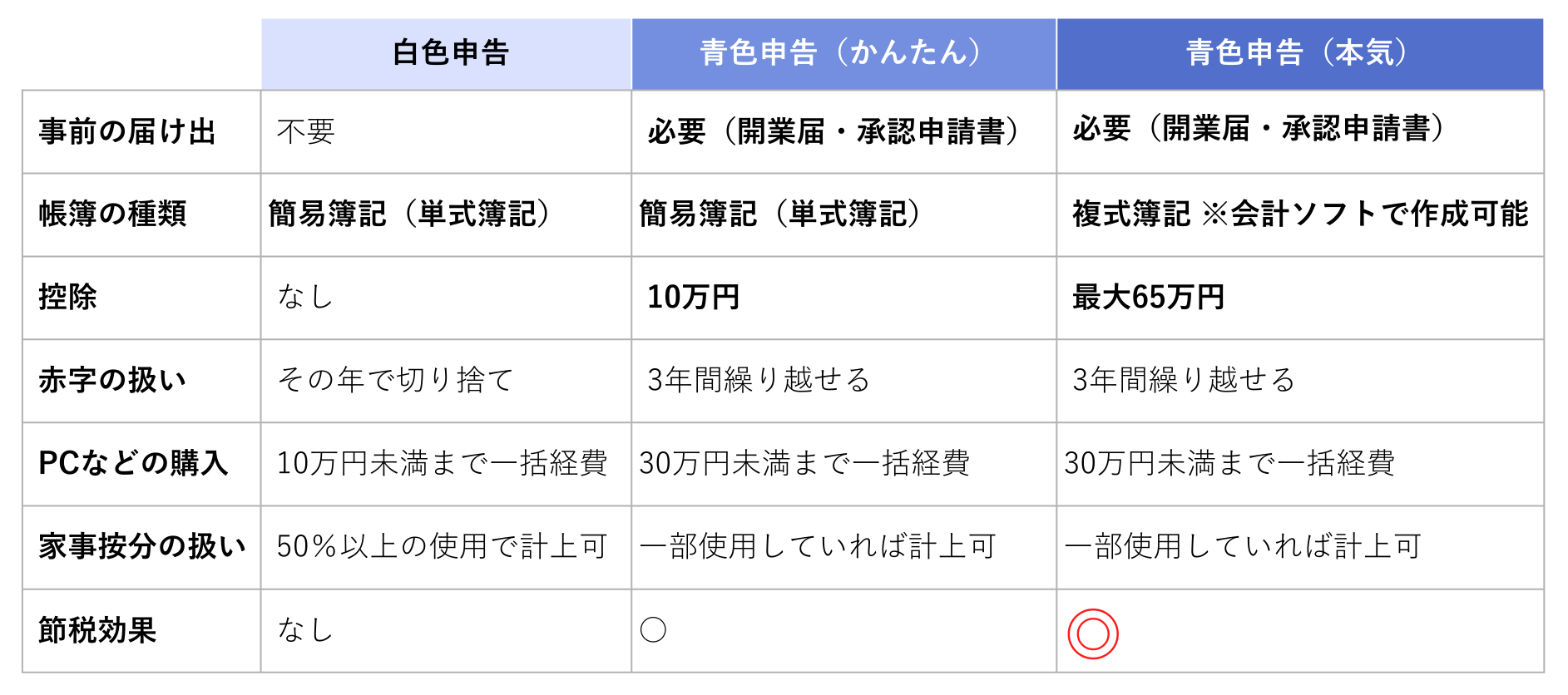 最大65万円を所得(利益)から引ける「青色申告」が一番おトク。