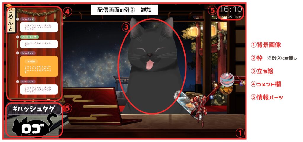 画面のベースとなる画像で、配信全体の雰囲気を決定付けます。